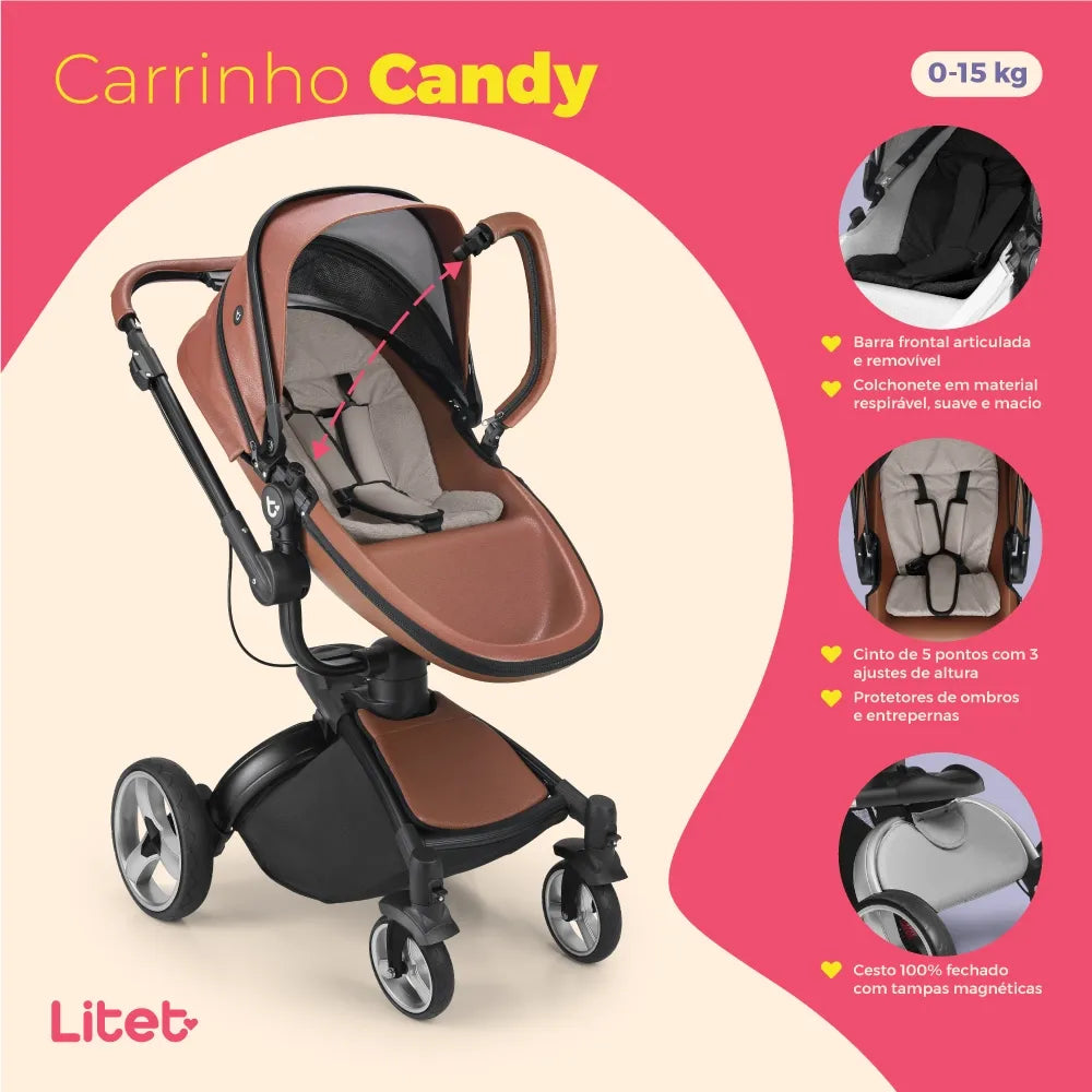 O Carrinho Passeio Moisés Candy 0-15kgs Caramelo Litet é a resposta para esses problemas. Este produto premium da Litet combina luxo, estilo, praticidade, segurança, conforto e ergonomia, oferecendo uma experiência única para pais e bebês.
